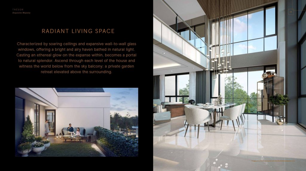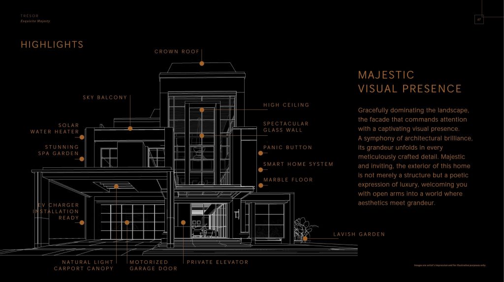 Rumah-rumah di Tresor BSD dihiasi dengan beragam fitur eksklusif, membuatnya menjadi tempat tinggal yang benar-benar istimewa. Mulai dari ruang tamu dengan langit-langit tinggi ganda yang memancarkan kemegahan hingga taman atap yang menawarkan tempat peristirahatan yang tenang di tengah lanskap perkotaan, setiap aspek rumah ini dibuat dengan presisi dan perhatian terhadap detail. Finishing marmer menghiasi interior, menambahkan sentuhan elegan dan sofistikasi ke ruang hidup.